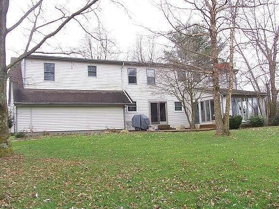 Location!! Location!! Location!! This Magnificent 3 Bedroom, 3.5 bath Home abounds with Character, Charm and Comfort. The inside of this home is huge consisting of Living room, Den with brick fireplace and gorgeous built-in shelving, spacious kitchen with appliances, dining area and lots of cabinetry, 2 Beautiful Master Suites, each with full baths, sunroom, oversized 2-car attached garage, Nice Amish storage building, brick patio and sidewalks. Amenities include hardwood and ceramic tile flooring, chair rail, crown molding, walk-in closets, mature landscaping, French doors, window seats in Dormers, tons of storage space. Great neighborhood with country atmosphere yet close to town.
