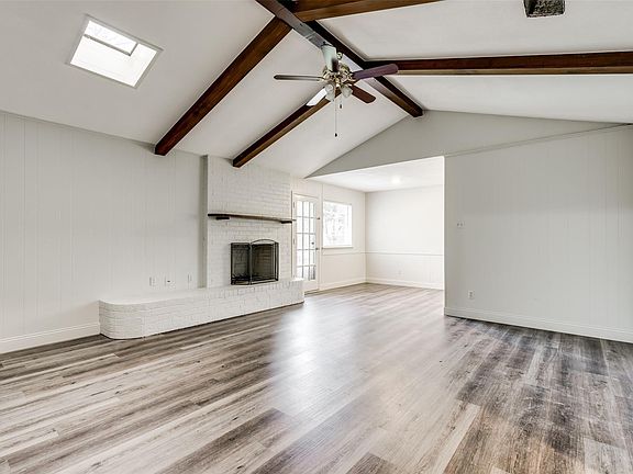 Complete remodel with luxury vinyl throughout; New oversized AC and heat. New dishwasher. Quartz countertops including breakfast bar. New light fixtures and large fenced back yard backing up to the Methodist church It has a fireplace, skylight, and a spacious game room or second master.