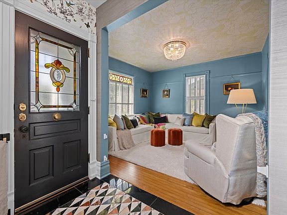 Location and Lifestyle-Step inside and fall in love! Experience downtown Geneva living at its finest in this designer-curated home. Every detail has been thoughtfully tailored, blending modern elegance with an effortless 'happy living' design. With its striking interiors and unparalleled location, this residence is as much a showpiece as it is a retreat - all just steps from the heart of Geneva's dining, shopping, and vibrant city energy. A welcoming front porch invites you inside, where hardwood floors throughout the first and second levels (many original) and 9-foot ceilings in the living and dining rooms create an open, elegant feel. A plaque featuring the original owner's signature adds a historic touch, while designer lighting throughout brings polished, contemporary flair. The bright, inviting kitchen features soapstone countertops, Carrara marble backsplash, high-end appliances, and a spacious walk-in pantry. An addition expanded the home to include a breathtaking, light-filled family room with a coffered ceiling, custom cabinetry and bookcases, banquette seating, and a wall of windows that flood the space with natural light. At its heart, a gas fireplace with Artistic tile surround adds warmth and charm. Upstairs, the spacious primary suite, part of the newer addition, features vaulted ceilings, a custom walk-in closet, and a spa-like bath with a clawfoot tub, separate shower, heated floors, a gorgeous vintage vanity, and a striking barrel ceiling. A stylish hall bath and convenient second-level laundry serve the additional three bedrooms. Altogether, the home offers five bedrooms and four full baths. The main house includes four bedrooms and three full baths (one on the main level), while the adorable coach house adds a fifth bedroom and fourth bath with skylight and built-in dresser-perfect for a guest suite, home office, or studio. Outdoor spaces are equally enchanting, with recent updates including a brick paver patio, turf yard, privacy landscaping, cedar fence, and sprinkler system. The ribbon driveway leads to the detached one-car garage. Other recent improvements include a partially finished basement and cedar privacy fence (2025), water heater-coach house , HVAC (2024), AC, exterior paint, brick patio, landscaping, and kitchen updates (2023), designer lighting, wallpaper, and tile (2022), main house roof, addition windows (2016). Don't miss this rare opportunity to own this stunning historic home in an unbeatable downtown location just steps away from dining, shopping and the Metra.