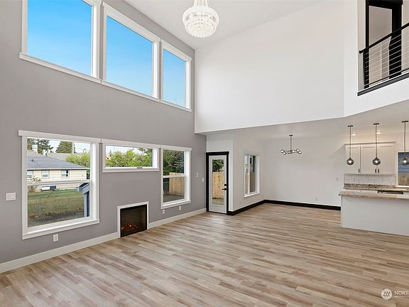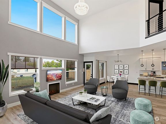 Seller will negotiate a BUYER CREDIT for closing costs or interest rate buy down. Stunning, high quality new construction home! Contemporary design includes covered front porch, stone and wood accents outside, black and gold accents inside. Lots of light in the 2-story family room with gas fireplace and crystal chandelier which is open to the dining area and kitchen. High end cabinets, granite countertops, SS appliances, island and pantry make the kitchen a chef's dream. Main floor bedroom is connected to a full bath. Primary suite includes 5-pc bath and walk-in closet. Enjoy the fireplace while soaking in the oval tub! 2 additional bedrooms upstairs, one with WIC, full bath and laundry room. Backyard has been hydroseeded. 2 car garage.