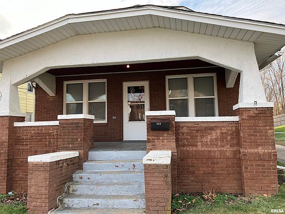 2BR, 1BA BRICK Bungalow w/spacious 1.5 car detached garage, located near school. Lots of original woodwork throughout. French doors with beveled glass between Living and dining room. Newer replacement windows throughout. New Furnace and C-Air in 2023. Newly remodeled Bathroom with walk-in shower and rain shower head. Lovely old world charm built-in decorative fireplace with book cases on each side in large living room. Walk up attic partially finished for added storage space or many possibilities. All appliances stay but unwarranted. This home sits on 2 lots with a large chain-link fenced area and partial privacy fenced backyard. Additional driveway on south side. Large deep basement has many possibilities as well.