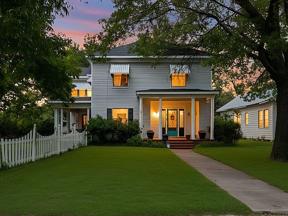 Step into timeless charm with this beautifully remodeled 4 bedroom, 2 bathroom home, located just one block south of California Street and near the beloved Lancaster Manor Bed and Breakfast. With classic American-Victorian architecture, this home welcomes guests with warmth and allure straight from Southern Living magazine! Situated on a spacious fenced corner lot, the property is shaded by towering 200+ year-old oak and pecan trees—perfect for relaxing outdoors on warm Texas days. Don’t miss the original concrete hitching post out front, a unique touch of history! The inviting covered front porch, framed by stately columns, is the ideal spot for a pair of rocking chairs and a hot cup of coffee or a glass of sweet tea. Inside, a formal foyer welcomes guests with original pine flooring, a beautifully crafted staircase, and an imported late-1800s piano. The first floor features multiple living spaces including a sunroom, formal dining and living rooms, and an updated kitchen with stainless steel appliances, granite countertops, island, and abundant cabinet and pantry space. Upstairs, the spacious primary suite includes a cozy sitting area with large windows overlooking the front yard and an original gas fireplace. Both bathrooms have been tastefully renovated to blend modern style with original historic touches.