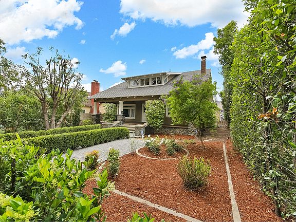Absolutely stunning Craftsman known as the C.K. Chadwick house is situated in the Euclid Historic District close to Historic Downtown Upland and is protected under the Mills Act, offering significant property tax savings. This 1909 home harkens back to the Arts & Crafts era but includes todays modern conveniences. Exterior features include a shed roof dormer, river rock foundation and columns with tapered posts, wood front porch with decorative chain railing and beadboard ceiling, and lots of original windows. Inside is a large entry boasting gorgeous original woodwork and wainscoting, tapered wood posts, and a magnificent staircase. The living room has a brick fireplace, beamed ceiling, built-in bookcase and a pocket door that leads to the attached library/office space. The XL formal dining room has an amazing built-in China hutch, beamed ceiling, plate rail and wainscoting. There is a large remodeled kitchen with an attached breakfast room that includes stainless appliances and double sink, granite countertops, subway tile, garden window, gas cooktop and tile flooring. Also downstairs is a Master Bedroom with attached bath with clawfoot tub and separate shower, octagonal flooring, and subway tile. Upstairs is a generous landing and three large bedrooms, three walk-in closets, a sleeping porch, and a completely remodeled bathroom with subway tile, wood vanity and clawfoot tub with a top-of-the-line thermostatic shower system. Other amenities include stained glass windows, separate laundry room, drought tolerant front yard, C/A & heat, tall baseboards, original floors, windows, doors and hardware, wood floors throughout, and a 1-car detached garage. Move right in and make your dream of the perfect Craftsman home a reality!