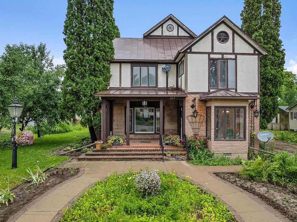 Check out this historic English countryside-style home, nestled along Norwalk's scenic bike trail. See the large, inviting front porch, surrounded by lush flowers & thoughtfully designed garden space. Inside the home, hardwood floors, wooden beams, & unique tile accents create a warm, character-filled atmosphere in generously sized rooms. Natural light pours through the foyer, setting a bright, airy, tone throughout the home. The cozy sunroom offers a peaceful year round retreat space. On all levels find eye-catching paint details that add personality and style. Generous storage throughout--including a rare bonus third floor--ensures space for everything and everyone. Other advantages are a durable steel roof & new deck, this unique property offers not just a home but a lifestyle.