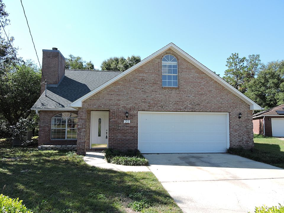 Available NOW! Recently remodeled and updated 4 bedroom/2.5 bath 2 car garage home located south of I-10 with easy commute to Eglin/7th group/beaches to the south. The home features new LVP flooring throughout, LED light fixtures throughout, new HVAC system, etc. The living room features a wood burning fireplace. The kitchen features updated cabinetry, granite countertops, stainless steel appliances. The master suite is located on the first level featuring a large walk in closet, jacuzzi tub, tiled walk in shower, dual vanities, and a separate water closet. The additional bedrooms are located upstairs with cathedral ceilings and ample closet space separated by a full bathroom. There is a 12x20 deck with bench seating just off the kitchen, perfect for entertaining. Lawn Maint included