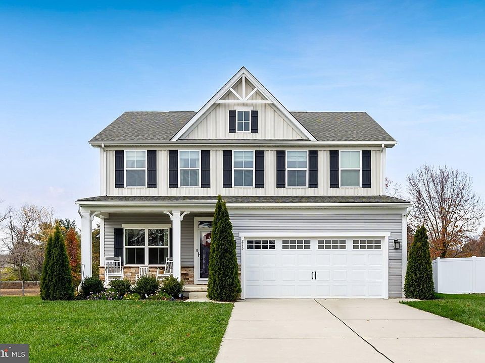 Welcome to Monroe Pointe—one of the area’s most sought-after communities—where this beautifully maintained newer home stands out with genuine curb appeal. The craftsman-style elevation, inviting front porch, and warm exterior palette set the tone for the thoughtful design you’ll find throughout. Step inside to an open, welcoming entry anchored by luxury vinyl plank flooring and abundant recessed lighting. A flexible front room offers space for a living room, playroom, or home office—whatever suits your lifestyle. The heart of the home opens beautifully into a spacious kitchen and family room, creating an effortless flow for both daily living and entertaining. The kitchen features a large center island with granite countertops, staggered cabinetry, subway tile backsplash, pantry with built-in spice rack, and a full stainless appliance package—including the refrigerator. A bright breakfast room completes the space and overlooks the backyard. Upstairs, the primary suite is impressively sized with a large walk-in closet and ceiling fan. The en-suite bath is styled with a double-bowl vanity and a beautifully tiled shower. The additional bedrooms are all comfortably sized with neutral carpet and ceiling fans. The second-floor laundry room adds convenience and comes complete with cabinetry, washer, and dryer. The professionally finished basement expands your living area with newer LVP flooring, recessed lighting, and rough-in plumbing ready for a future bathroom—while still offering ample storage. Outside, enjoy a lovely backyard setting featuring an oversized stamped concrete patio, a charming play set, and an irrigation system to keep everything looking its best. Window treatments throughout the home are included for a truly move-in-ready experience. This Monroe Pointe gem blends designer style with modern comfort—an exceptional opportunity in a community everyone loves.