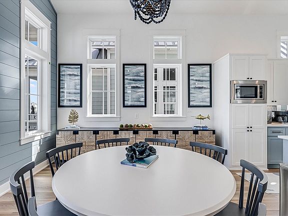 The home is named “It’s Sunbeliveable!” for a reason! Sold furnished, this 4-bed, 3.5-bath beauty showcases coastal blue shiplap & paneled wall accents, soaring ceilings, and an open floor plan. Interiors radiate the elegant coastal warmth expected at Cinnamon Shore South, the premier seaside village in TX! A 2nd-fl chef’s kitchen boasts gas range, scalloped backsplash, oversize prep island w/ seating, & dining area that pours into the living space. Step out to an enviable balcony overlooking the lake, while the home itself fronts Three Corners Lawn. The primary king suite flaunts a lavish bath w/ double sinks & herringbone tile walk-in shower, plus a private balcony. Downstairs, guests enjoy a king suite w/ spa-like bath + a king bedroom & bunk/trundle room w/ shared hall bath. A 1st-fl dry bar, laundry/mud room w/ beach gear drop & foot locker nooks & hooks add extras & essentials. Outdoors, gather around your private fire pit or relax on charming porches. A 2-car garage with room for a golf cart, plus plenty of parking in the rear driveway, along with proximity to the beach, luxe pools & all things Cinnamon Shore, round out this guest favorite, which earned over $98K in rental income in 2024.