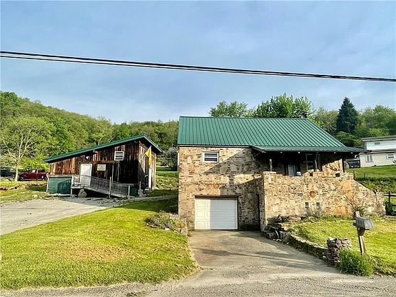 Welcome to this charming stone cape cod home in the Mount Pleasant Area School District! This home sits on .87 of an acre along with an additional building of 950 sq ft that is currently used as a business. The additional building has heat and an air conditioning wall unit. On the main level of the home is the kitchen with appliances included, dining room with a stone cased wood burning fireplace, living room with hard wood floors, bedroom and full bath. Upstairs are 2 bedrooms. Home is heated with oil heat with a wood burner in the basement for a secondary heat source. Integral garage with concrete driveway and additional gravel area for parking. Sunroom off the back of the home with a concrete patio area. Come make this your home in the mountains! Minutes from Hidden Valley, Seven Springs Resort and many state parks and local attractions.