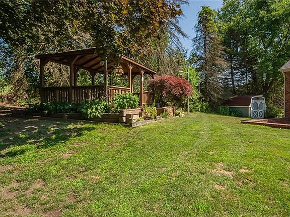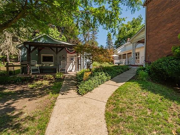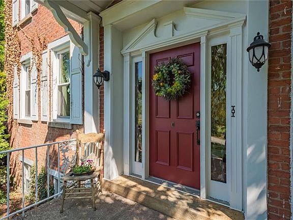 Historic 1836 Federal-style Equestrian Estate Situated on 19.14 Acres with Stone Terrace. While thoroughly updated, this home preserves its classic aesthetic with crown molding, peg and plank hardwood flooring, hand-painted chair rail mural, rustic stone fireplace, open ceiling beams, marble casements, and built-in shelving. The open concept kitchen, master bathroom, electric, and 17 windows are all updated. The large 3 car garage is not short on space. The barn can board 4 horses, has a large workshop front, wide aisle, tack space, full attic, and opens to the paddock. The bunk house holds 4 and has a separate workshop area. In addition to a gazebo, there is a shed with attached goat cage. The pond stocks bluegill, crappies, bass, catfish, and coy. The property is home to many fruit bearing trees including raspberries, blackberries, grapes, pears, and apples.The long stretch of property to the right of the pond is ideal for ATV riding, horse riding, or possibly even a few golf holes.