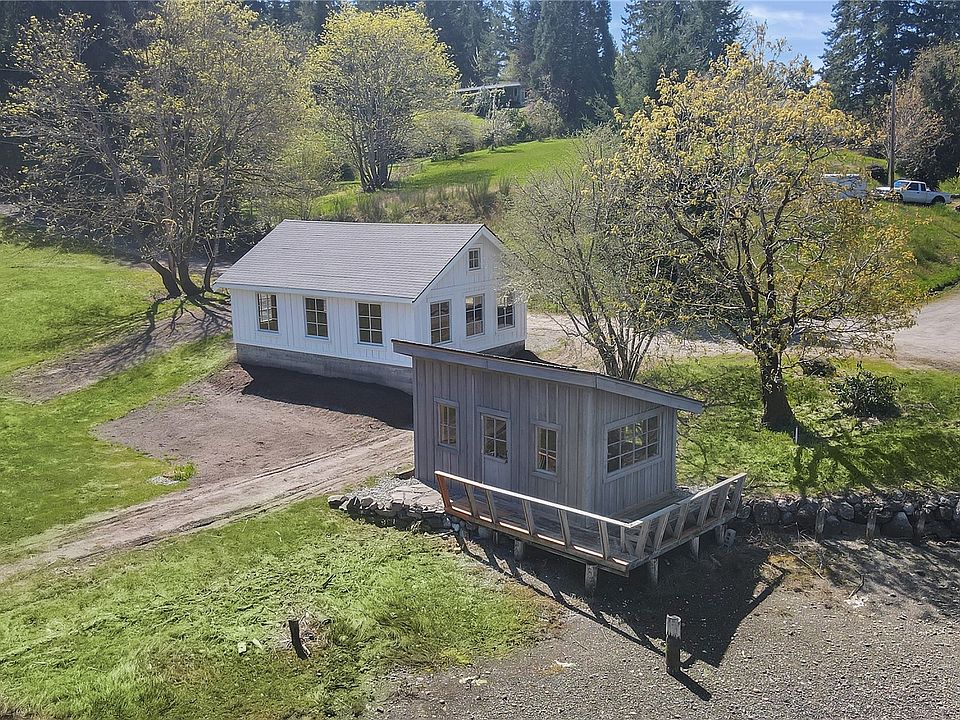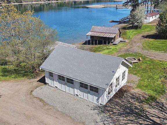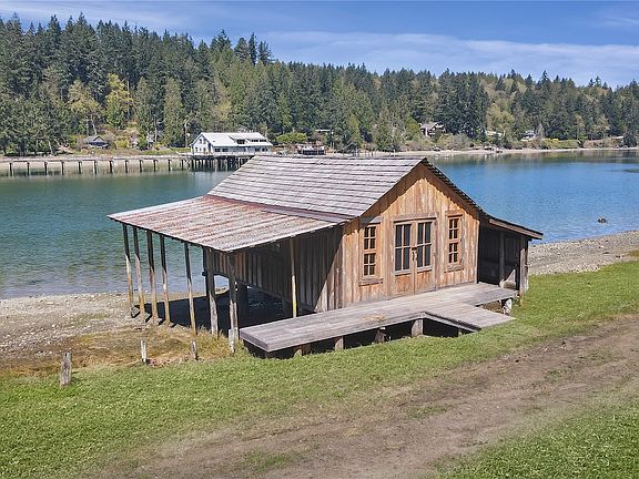 Truly one of the best waterfront properties available today. This property has 380' of prime low bank waterfront and is part of the original Penrose estate with an amazing history. Property has many features that it makes it one of the ultimate hidden gems in the Puget Sound area. Including a restored boat house and cabana that sit on piers above the water, restored cedar multi car garage with loft, the dock is fully owned. The property also has 2 manufactured homes at the water's edge. These homes are very rough and might need to be replaced but have been left in place because of the close proximity to the water giving the new owner the opportunity the replace them where they sit. Property has large pasture areas and many fruit trees.