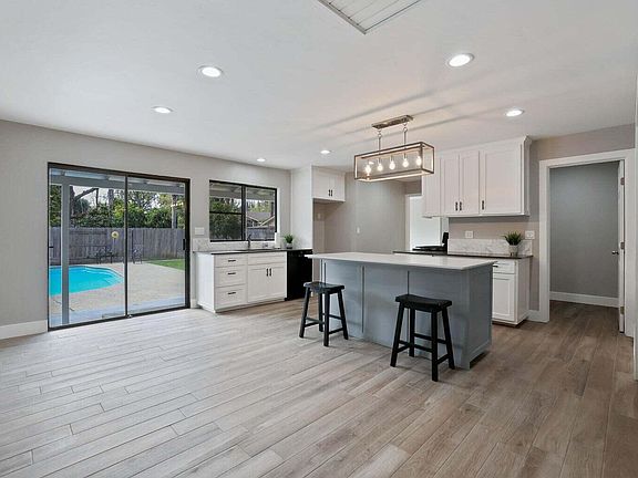 This impressive property in Vintage Estates offers over a quarter-acre of land. It features three bedrooms, an office, and three and a half bathrooms. The outdoor space includes a pool and ample room for an RV. Recent upgrades, such as fresh paint, new flooring, cabinets, and countertops, enhance its appeal. Standout features include stunning 6 x 24 porcelain tile wood plank flooring, a stylish island kitchen with shaker-style cabinets and quartz counters. The addition of LED can lighting brings a modern touch to the property. Other highlights include a guest room with a private bath, indoor laundry, an office space, and a convenient half bath with pool access. The garage boasts a work area, and the spacious backyard, complete with a refreshing pool, is perfect for outdoor activities. With laminate floors in the garage, this property is truly exceptional in every way.