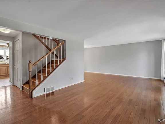 Fabulous Updated Wedgewood Condo Townhouse. 3 bedrooms, 2 1/2 baths, 1739 SF. Live in one of Western NY's finest Florida-Style condominium communities with near-total privacy and much less maintenance than your single-family home. Very generous amounts of storage, a full, dry basement, a 2 1/2 car garage, 1st floor laundry, newer windows throughout and filled with beautiful hardwood floors. Enjoy breakfast in the large eat-in kitchen (appliances included) with a view of your own private, fully fenced yard that accesses the garage. You may landscape the yard to your heart's delight or leave it very basic. The easy to maintain yard has an exposed aggregate patio - great for entertaining and summer festivities! The light and bright kitchen is very large with floor to ceiling windows, recessed lighting, a huge eating area, and has been updated with granite counters and KraftMaid dovetailed cabinets, double undermount sink, a tile backsplash and tile flooring. There is also a formal dining room that leads to the large living room in the front of the house with a fireplace for those cold Buffalo winter days. Upstairs you will find three well-sized bedrooms along with a very large hallway closet. The primary bedroom is an en suite with a dedicated bath and a walk-in closet plus two smaller closets. There is a full bath for guests off the hallway that has been updated. There is a full, bone-dry basement with some shelving, Lennox furnace, C/A and sump pump with a battery backup. Enjoy the community's salt-water generated pool, the clubhouse with saunas, tennis court and beautifully maintained grounds. The newer items in the condo are the windows and the kitchen. The monthly fee covers the water, exterior maintenance (snow, lawn, roof, siding, fence), basic cable (Spectrum), internet, master insurance policy for the building exterior, reserves, common property maintenance. Your taxes take care of the trash removal. Low condo property tax. Pets up to 40 pounds at maturity. Showings start immediately.