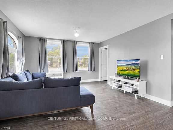 Renovated 3 bedroom apartment on second floor at the edge of downtown at the corner of Wellington St and Simcoe St, separate entrance from street level. Open concept living dining and kitchen. Upgraded recently with new floors, windows, ductless AC/Heat, modern washroom with jacuzzi tub, appliances and stackable washer & dryer. One bus to UWO and bus stops few steps away. Heat and water are included in the price, you pay only for hydro. Available immediately.
