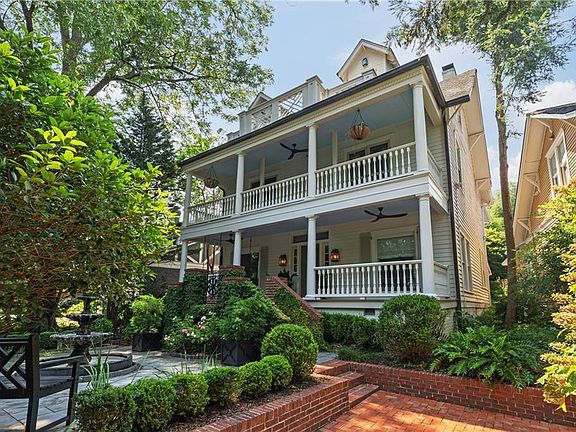 Nestled in one of Atlanta’s most sought-after neighborhoods, this classic 1920s Ansley Park home presents an air of Southern charm and elegance, framed by lush, mature greenery. The ivy-covered brick wall provides privacy and encloses the front courtyard with a tiered water fountain, adding a tranquil focal point. Step into the welcoming living room with timeless comfort, a space perfect for entertaining and intimate gatherings. From the living room, retreat into the study with floor-to-ceiling wood paneling, a coffered ceiling, beautiful arched window seat, and custom bookshelves to showcase a collection of literature and cherished artifacts. The spacious dining room flows effortlessly into the kitchen, breakfast nook, and cozy family room. Upstairs, discover an oversized primary suite with a generously sized walk-in closet and two additional well-appointed bedrooms and bathroom. Don’t miss the third-floor bonus spaces – perfect for a 4th bedroom and office or playroom. Hardwood floors gleam throughout, adding warmth and character to every room. The private outdoor space, enclosed by a classic red brick wall and verdant foliage, provides an area to unwind or create an intimate al fresco area under the pergola.