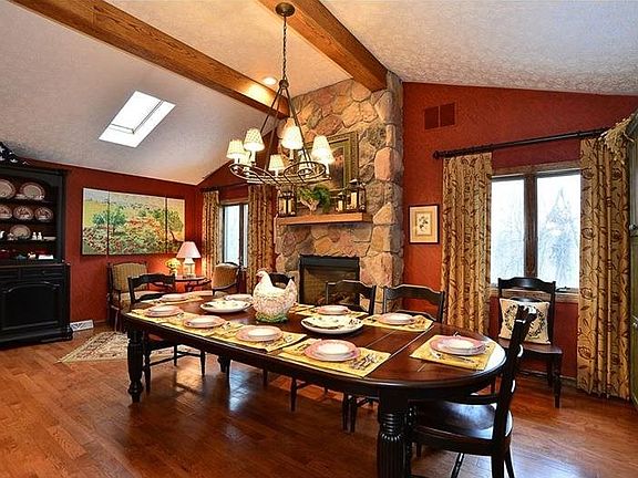 Located at the end of a cul-de-sac, this custom home provides a great retreat from a stressful day. The welcoming family room showcases a fireplace and vaulted ceilings. The open floorplan to the large dining room and 2nd fireplace accommodates the demands of celebrations and holiday dinners. In addition, the kitchen features stainless steel appliances, dual ovens, and a separate gas cooktop. The master bedroom provides a sanctuary setting with a steam shower and walk-through closet. Enjoy cheering on your local athletic teams to victory by using the basement wet bar and 3rd fireplace. The custom woodwork wraps the walls of basement leading to the outdoor living space. Ample outdoor cook space, custom grill, and gas hook-ups provide effortless support for entertaining around the in-ground pool, hot tub, or two fire pit features.