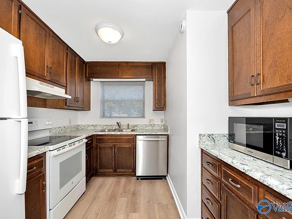 Move-in ready, 2 bedroom, 2 bath end-unit condo in South Huntsville with easy access to dining, shopping and Redstone Arsenal. Recent updates include fresh paint, LVP flooring, light fixtures, and renovated bathrooms. Features a newer water heater, Bosch dishwasher, refrigerator, washer & dryer, microwave, and 65" Sony smart TV. HOA fees include: Swimming Pool, Tennis, Garbage Removal, Cable TV, Quarterly Exterior Pest Control, Quarterly Termite Inspection, Exterior Lighting, HVAC Maintenance, and Grounds Maintenance. Low-maintenance living in a convenient location. Great for first-time homebuyer or investment property.