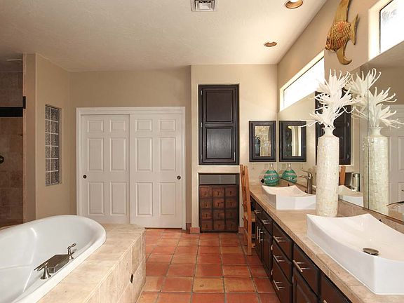 Highly desirable location, upgraded Custom Estate on 1.037 acre (Horse Property) in central Gilbert, 6 bedroom over 5,000 SQFT in main house, 3.5 baths, 5 fireplaces, large sunken living room, great for entertaining, 2 Master Bedrooms, one with His & Her walk-in closet. Guest quarters above 3 car garage separate from main house. Enjoy outdoor living with play pool, sport court, built-in BBQ that conveys AS IS, irrigated lot, no HOA, RV parking on large lot. Propane tanks used for fireplaces, dryer and plumbed for kitchen, but not dropped down to kitchen. Dryer can be LPG or electric. 4 newer A/C Units-2 split systems,14 Seer Rating, this home has a Whole House In-Duct PCO Air Purification System and home surge protector. Hurry before it is gone!
