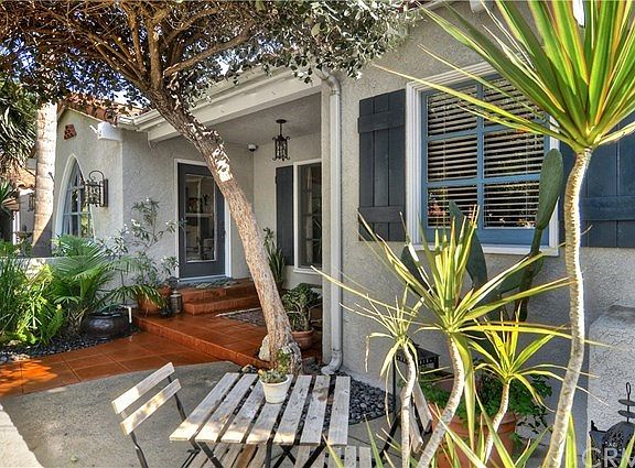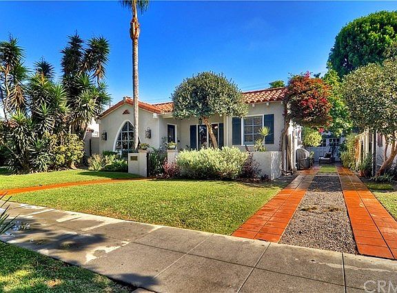 Welcome to 1928 when architectural beauty and fine craftsmanship were the rule of the day! You can feel it as you enter onto a cozy patio and gaze through the original glass and wood front door. Step into the living room, you are taken in by the unique arrowhead shaped picture window and original fireplace. Notice the honey oak floors and beamed ceilings. Enter the dinning room through the scalloped archway and take notice of the the large windows, that when open, let in a beautiful breeze. Enter the updated galley kitchen with travertine flooring, granite counter tops and amazing breakfast nook with storage galore. The front bedroom has coved ceilings, it's own 3/4 bath and a door that leads to the backyard entertaining area. Next comes the bathroom with the original Wrigley tile floors, newly tiled walls and shower that are right in step with the day it was built. The second bedroom is great for kids or an office. All the bedrooms have skylights. The hallway leads to a good sized T.V. room/den with french doors that lead to the backyard. Next is an oversized master bedroom with a walk in closest and glass slider that leads to the backyard. Oh, let's not forget the indoor laundry room. The backyard has many alcoves for entertaining and is also a gardeners delight. The original orange tree still has the sweetest fruit! Lots of room for parking on the Hollywood driveway that leads to an oversized 2 car garage with classic doors. You'll love it here - this home wo