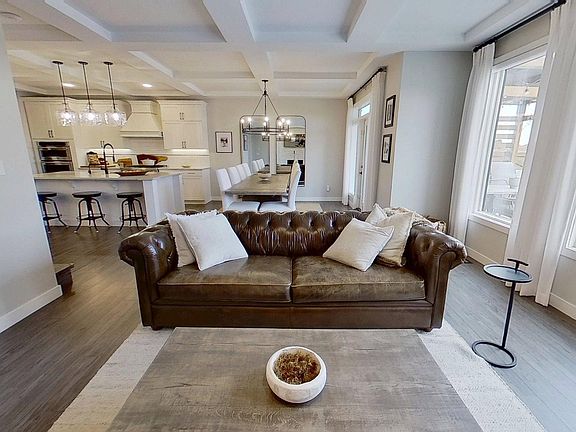 Welcome to this well-appointed 4-bed, 3.5-bath home, set on a large pie-shaped lot backing green space in South Edmonton, with over 3,500 sq ft of bright, comfortable living. Inside, you’ll find 9-ft ceilings on all levels, quartz countertops, upgraded appliances, vinyl plank and tile flooring (carpet in basement), and a built-in 5-zone speaker system. The chef’s kitchen offers ample counter space, a large butler pantry with ladder access, beverage fridge, wet bar, and a glass-enclosed wine wall. Upstairs, the spacious primary suite features a sitting area, wet bar, blackout coverings, steam shower, makeup desk, dual sinks with storage tower, and a private water closet. The finished basement includes a living area, gym space, bedroom, full bath, and large storage room. Outside offers a concrete sport court, two-tier patio, outdoor speakers, pergola, and backyard garage access. A heated oversized garage and extra-large driveway complete the home. Hunter Douglas coverings and drapery are included.