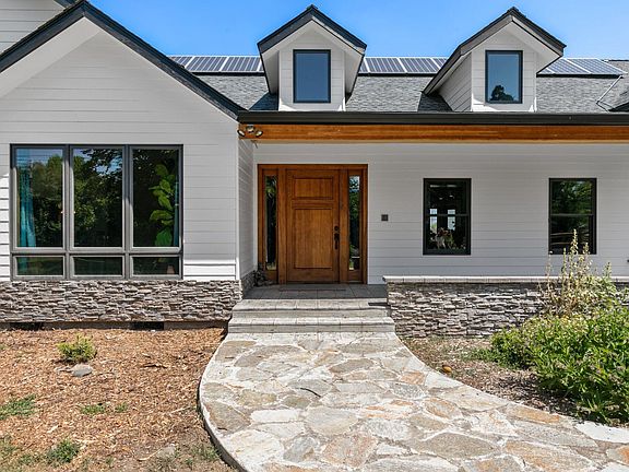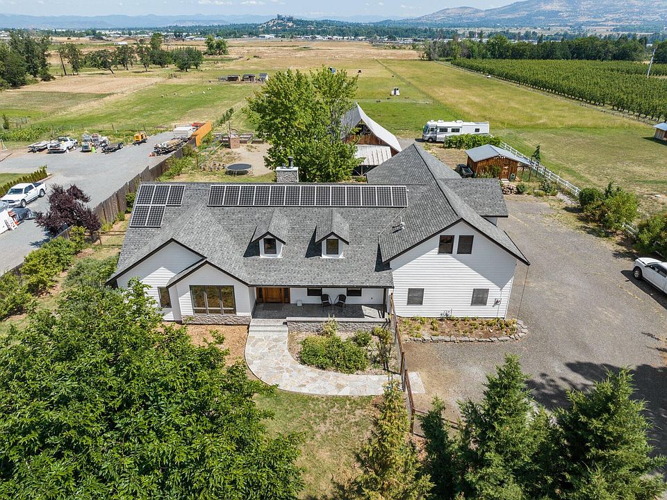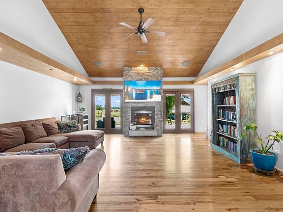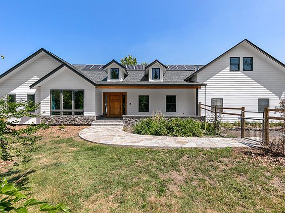 Discover this custom-built home w/ all the conveniences of city living but located just outside of town on a stunning 5.99 acre gated rural paradise! Incredible well delivering 35 GPM and irrigation rights for the whole property. Inside the home includes vaulted ceilings, Myrtle hardwood flooring and expansive windows creating an enchanting ambiance. Kitchen is equipped w/ all high-end appliances and stylish granite counters. The primary suite offers its own cozy fireplace, French doors, and a luxurious bathroom w/ walk-in closet. Two additional bedrooms and an office on the main level. Additionally, there's a large finished loft upstairs which is ideal for a two family setup. Outside, a large private deck w/ fireplace and jacuzzi hook-up awaits. The fully fenced property features a 2-car garage, RV parking, solar system, and a hay pasture. A restored 1940s barn and shed/chicken coop add charm! Ask for the Property Features Sheet!