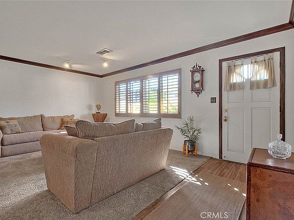 This lovely and spacious 3 bedroom, 2 bath home with nearly 2000 sq. feet of living space is located on a quiet cul-de-sac in the city of La Habra. The home features crown moldings, custom wood shutters, and beautiful wood laminate and newer carpet throughout. The comfortable living room is flooded with natural light and opens to a large dining area that is perfect for large gatherings. Adjacent to the dining area is a modern kitchen with stainless steel appliances. The hallway leads to a newly remodeled bathroom with custom tiled shower and quartz countertops, as well as two roomy secondary bedrooms with plenty of closet space, and a separate laundry room which leads to an attached two-car garage. The sizeable primary bedroom suite features a huge walk-in closet, sliding dual-paned glass doors leading to the backyard, and completely remodeled en suite bathroom with double sinks, ample storage, a beautiful shower with custom tile work, and modern fixtures throughout. A large family room features a massive stone fireplace and opens to the backyard. This amazing outdoor space features a heated pool and spa with waterfalls, multiple seating areas including a palapa, and a separate grassy area. Definitely a MUST SEE!