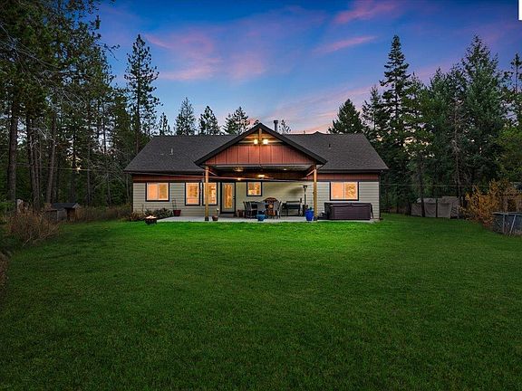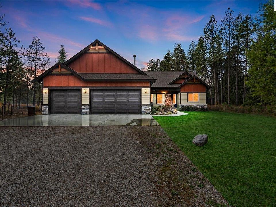 Nestled on 9.95 picturesque wooded acres in Rathdrum, this 2,702 sq. ft. custom built home offers 5 bedrooms, 3 bathrooms, a 3-car garage, and room for your dream shop. Designed for comfort and style, the home features vaulted ceilings, a wood fireplace with rock accents, open gourmet kitchen with solid granite countertops and a walk-in pantry, and a luxurious master suite with a walk-in closet, tiled shower, and jetted tub. Outside, enjoy a gun range, covered patio, firepit, garden, and chicken coup, all while surrounded by incredible wildlife. Located just minutes north of Hayden in the Lakeland School District, this property with its serene country living offers plenty of space to store your toys, entertain or relax all while enjoying the peace and privacy.