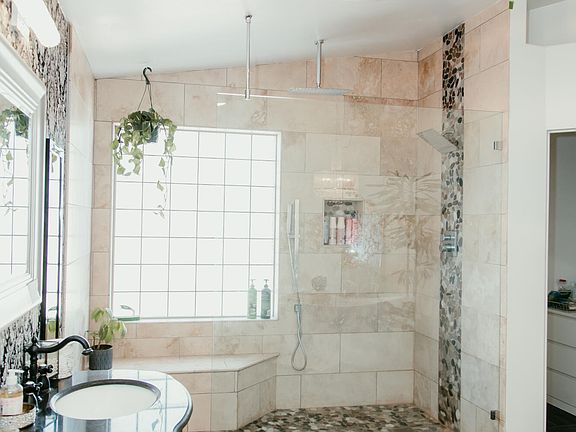 Stone accented gas fireplaceModern eat-in kitchenMassive master bedroomMaster bathroomLarge islandCounter space galoreWhite cabinets