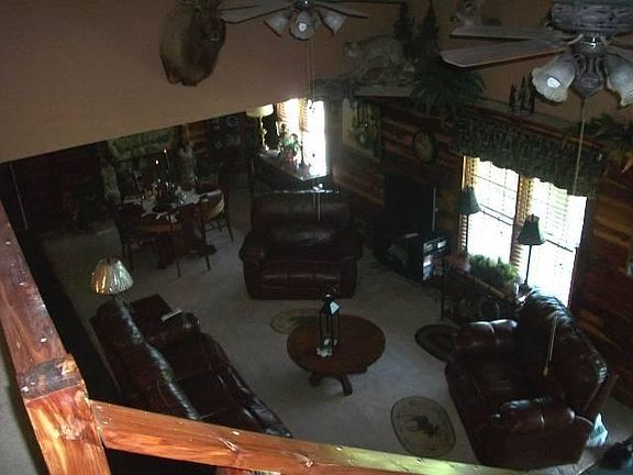 Sitting back off the highway is this beautiful well maintained cedar log home. Main level is cedar log with log siding on the upper level. Great room has a stone fireplace w/vent free logs. Updated central H&A & new water heater installed in 2014. Breakfast area has French doors that leads into the sunroom. 2-3 Pantries in the utility area with lots of shelving. All bedrooms have walk in closets. 16x32 log building ideal for home business or workshop. Log building has electric, heat and window a/c. Ornamental water wheel located next to a potential fish pond. 10x10 log sided building w/electric, concrete floor & window a/c, has hot tub for 4. Orchard consisting of apple, peach, pear & cherry trees & young pecan trees. Nice large grape arbor.