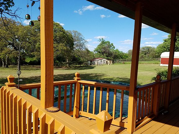This adorable home on two beautiful acres is move-in ready! The split-bedroom layout has nice-sized rooms with natural light and neutral colors. Recent updates include paint, carpet, tile and wood floors, new exterior steps, and new pool liner. Workshop has electricity, ceiling fan, and great storage space as well as an RV hook-up. Old barn has inside pens, an outdoor fenced area, electricity, water, and additional storage space. You'll love relaxing on one of your covered porches (on 3 sides of the home) and cooling off in the above ground pool. With gorgeous trees, grape vines, and lush grass, this property is a country gem.