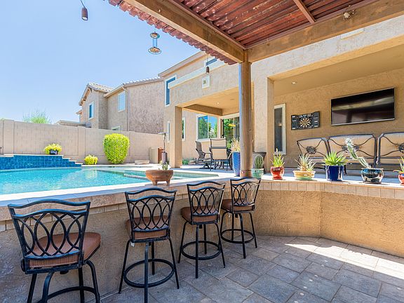 Exceptional home on prime lot at the end of a cul-de-sac in the desirable gated side of Carefree Crossing. Back yard is an entertainers dream w a sparkling pool & waterfall feature, cabana style sunken BBQ w swim up seating, hot tub, turf & extended covered patio. All the space you'll need w this ideal floor plan that includes 4 BR's, 3 full BA's, an office, a game room, spacious formal living area w vaulted ceilings & gas fireplace, & formal dining. Remodeled kitchen features a large island, gorgeous granite countertops, tile backsplash, double wall ovens & all top end Bosch SS appliances. Master suite has an immaculate master bath with dual sinks, tile surround shower, & separate tub. Remodeled guest baths, brand new carpet, PAID/OWNED SOLAR w 20 year warranty (installed in 2017)!