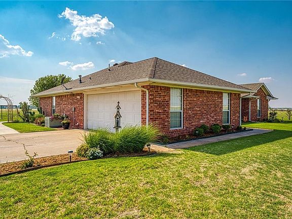 FANTASTIC LOCATION!!! One owner home was custom built on 20 acres on the edge of town. The home sits far off the road & has a large circle drive way giving it great curb appeal! This beautiful brick home has 4 bedrooms, 2 bathrooms, an open concept and a mother-in-law floor plan; the Primary BD is on one side of the home and 3 bedrooms are on the other. The kitchen features a gas stove, built in microwave and a large snack bar. The Primary Bedroom is spacious & has an large adjoining bathroom with an oversized custom tiled shower. Large 2 car garage with side entry. House has rain gutters & a water softener. The back porch features a large covered patio with an extended seating area. Very nice insulated shed has electricity, A/C unit, ceiling fan, windows, porch & an attached lean-to. There is another shed that also electricity, shelves and 2 lofts. The propane tank will stay with the property. Steel corral with working pens has electricity & water for livestock. Home is on well water.