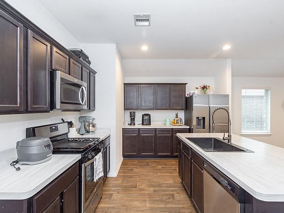 Welcome to the community of Jasmine Heights! This beautifully maintained one-story home located in Katy ISD. Featuring 4 bedrooms and 2 full bathrooms, this home offers a thoughtfully designed split floor plan that ensures privacy and comfort. Enjoy the bright and airy open-concept kitchen and living area with high-ceilings, perfect for entertaining or relaxing. The kitchen comes equipped with modern appliances and the home includes window blinds throughout for added convenience. Additional highlights: Washer, dryer, and refrigerator - all included! Sprinkler system to keep your lawn lush and green! Covered patio with decking! No back neighbors!