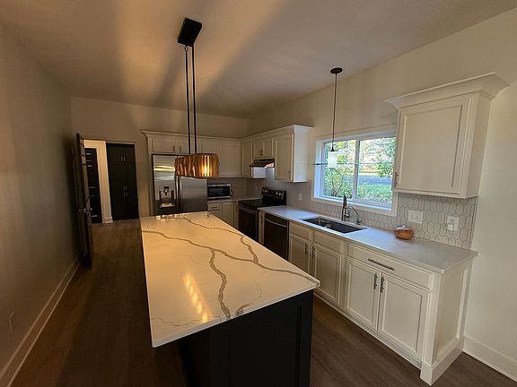 The kitchen features new solid-surface countertops, stainless steel appliances, a spacious pantry, and plenty of storage—ideal for everyday living and entertaining. The main and upper levels have been freshly updated with new paint and flooring, creating a clean and modern feel throughout.