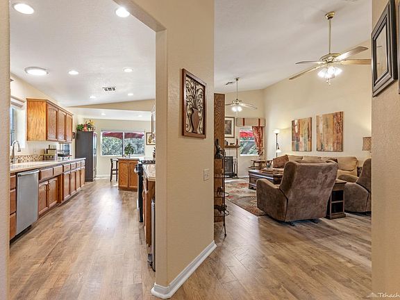 Welcome Home!!Delightful Golden Hills West home will enamor you!! Warm and inviting, this 3BD/2BA, with 2,288 SF, sits on .49 acres. Amazing location is close to town with that country feel. Charming living room with wood fireplace, dining area off kitchen with dual access to the back yard oasis. Large kitchen with pantry, plenty of cabinets and solid surface counters. All bedrooms and bathrooms are on the main floor. Upstairs is a fantastic living space with strategic windows to take in the valley views. Plumbing for upstairs bathroom already in place. Oversized indoor laundry room with sink and storage. Beautiful laminate plank flooring, vaulted ceilings, central heat and A/C. Park like setting grounds with sitting areas, gardens, natural landscape, built-in BBQ with fridge and storage shed. Second driveway for RV parking with 30amp outlet and water. Beautiful location with wildlife and privacy. Be truly happy in a perfect location with wonderful amenities. Come check out this private little paradise and see why it's not just a house, it's your home!!