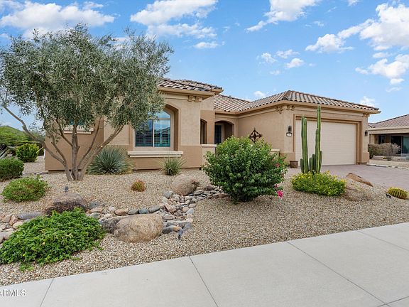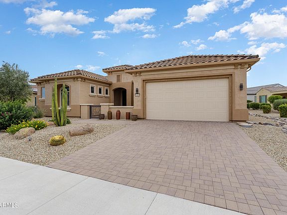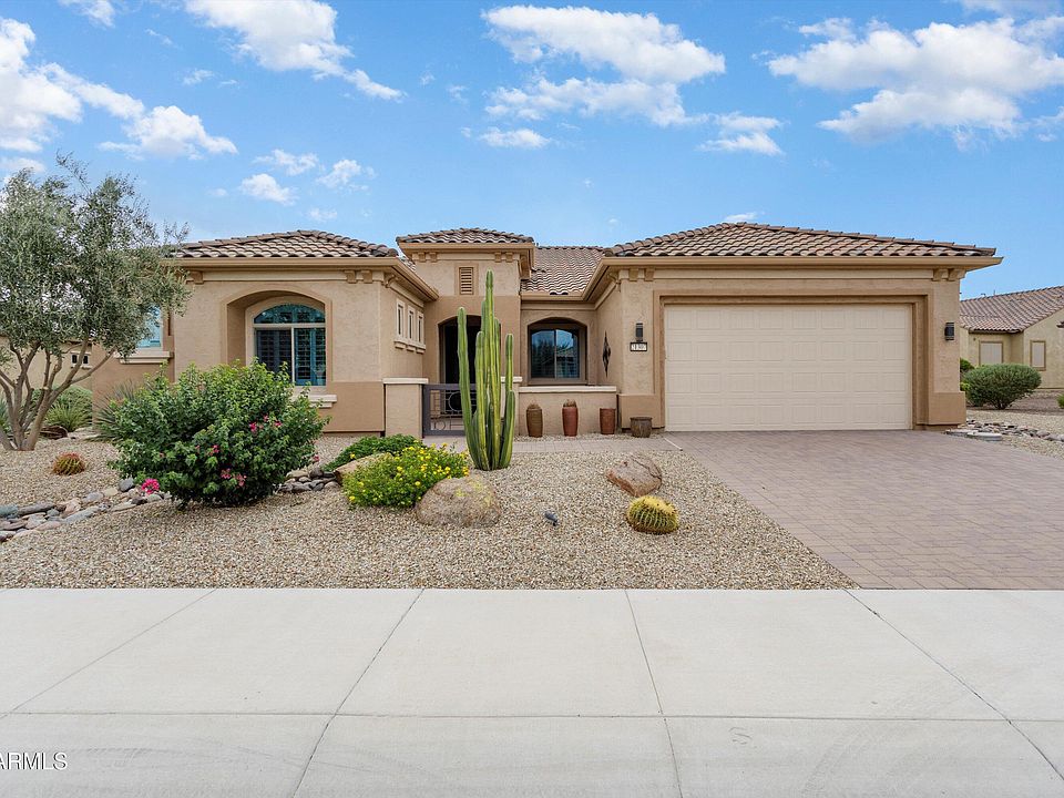 Stunning Endeavor with 3 bedrooms + den, 2.5 baths, and extended garage. A paver driveway and courtyard welcome you into plank laminate floors and plantation shutters throughout. The chef's kitchen offers granite counters, backsplash, gas cooktop, soft-close cabinetry, pull-out shelves, large island with pendant lighting, dining area, Butler's Pantry, and walk-in pantry. The spacious Owner's Suite features dual granite vanities, walk-in tile shower, private commode, and XL closet. Two guest rooms share a Jack & Jill bath. Laundry includes cabinets, sink, and extra fridge. Extended garage with epoxy floors, cabinets, and workbench. Backyard oasis with travertine patio, built-in BBQ, and lovely landscaping!