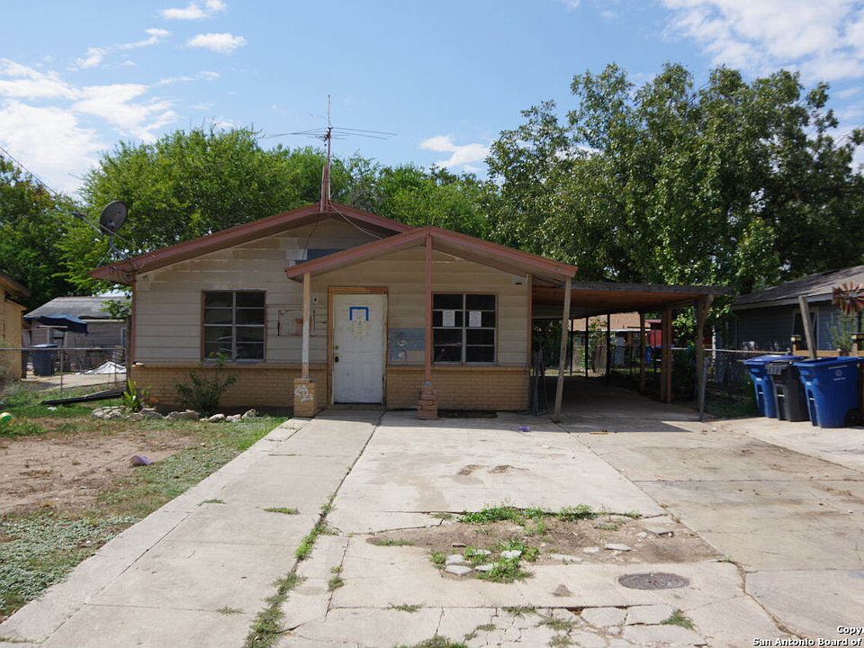 IMPORTANT NOTICE! " There is an ongoing federal lawsuit about a municipal demolition order on the property. The case is in rem. In the meantime, the City of San Antonio has flagged the property and no permits can be pulled or work commenced. We cannot advise you about your liability exposure if you attempt to sell a property that is subject to in rem court orders and City restrictions. We suggest that you consult with an attorney before taking steps which may result in significant legal consequences" Three bedroom, 1 bath with a covered patio and large back yard. The kitchen/dining area is just off the living room and has a separate door to the carport. Sold as-is. Easy access to Hwy. 90 inside the loop.