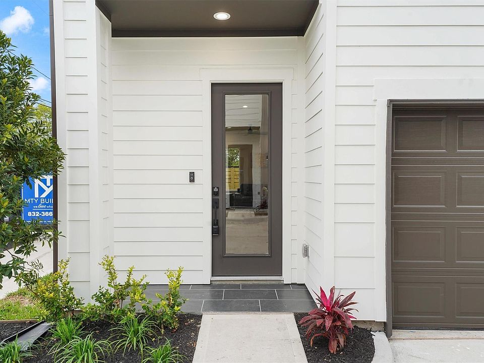 Welcome to Blalock Square, a gated community offering a brand new two-story home equipped with top-of-the-line features. This spacious home boasts three bedrooms, two and a half bathrooms, and a two-car attached garage with an electric car charging station. The Smart Home Features include LED lights, a smart garage door opener, thermostat, deadbolt, doorbell, electric car outlet, low voltage panel, smart light switch, and HVAC 16 SEER. The open concept design with high ceilings allows for ample natural light throughout. The first floor includes a living, dining, and kitchen area, while the second floor features the primary bedroom with his and her sinks, a large soaking tub, and a separate glass door shower. The location provides easy access to Energy Corridor, The Heights, Downtown, EADO, and other nearby attractions. This exclusive gated community is comprised of only 10 homes and offers modern floor plans and high-end interior finishes, constructed with quality by MTY Builders.