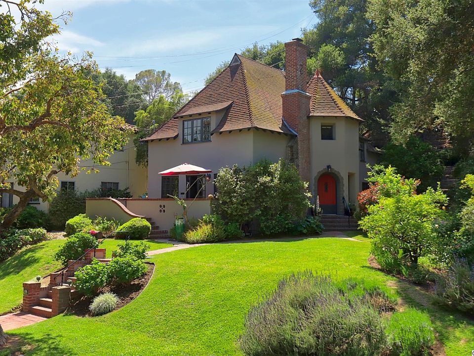 In 1925, O.L. Munding selected this parcel on which to build his vision of a French Chateau in the arboreal beauty of the Verdugo Woodlands. The distinctive details of a French design define elegance with its steeply pitched hipped roofs, tower, massive chimney, and gorgeous windows. Fortunately, the current stewards of this special home have sought to preserve and enhance its inherent character. A curved front path leads to the front brick stair and original rounded front door, which opens to an entry with a soaring ceiling and winding stair with custom detailed wood trim and wrought iron balustrade. The living room features original hardwood flooring, preserved Batchelder tile details, and large French glass doors opening to an enclosed brick garden terrace that overlooks the lush front grounds. The dining room is formal and generous. The kitchen has been tastefully remodeled with beautiful cabinetry, dark quarts counters, stainless appliances, and opens directly to the family room with its custom built-ins. Upstairs there are three bedrooms and two updated baths. The master suite has preserved wood details and built-ins, as well as its own master bath. There is also a stair that leads to a very private home office with more built in storage space and views from the high windows. Features include: CA/FA, updated electrical panel, updated plumbing, large laundry and storage rooms, attached garage, and the nearby Catalina Adobe Verdugo park.