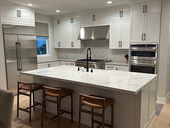 The chef's kitchen is the heart of the home, featuring high-end appliances, a generous center island, custom cabinetry, and custom backsplash and fixtures.