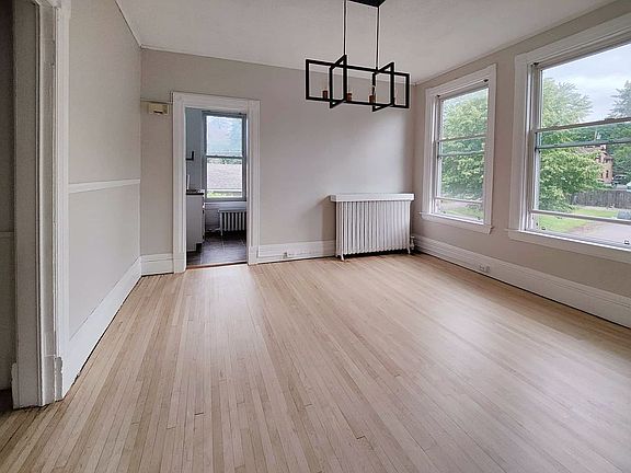 This is a large and private top-floor 1-bedroom (plus den) apartment with views and lots of storage! Enjoy the hardwood floors in the bedroom and den and a spacious eat-in kitchen. The living room is also very large with an oversized picture window looking out over Lake Superior. You'll love the location of this corner property 4 blocks from the lake and 1 mile from UMD. Bus stop is across the street. Garage and off-street parking available. Excellent Endion neighborhood and East school district: Congdon Elementary, Ordean East Middle School, East High School. Highlights: - Top floor! - Large rooms with great unit flow - Views of the lake! Privacy! - Convenient location in a residential neighborhood - Shared laundry in basement - Pets negotiable - Garage space negotiable $1195/mo base rent $35/person/month fixed utility costs (includes heat, garbage, water, sewer) Tenants responsible for electricity for unit No smoking within 20 feet of property Pets negotiable- require screening Garage space(s) negotiable Tenants responsible for keeping common areas clean