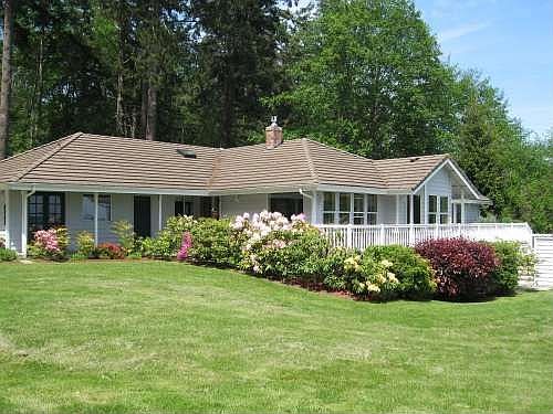 One level home on 5+/- acres with spectacular views of Useless Bay & the Cascade Mtns. 5+/- acres are comprised of forest behind and lawn in front. French doors lead to large wrap-around trex deck. Bonus room office. Basement for storage. Cement tile roof. Just minutes from the beautiful sandy beach/park.
