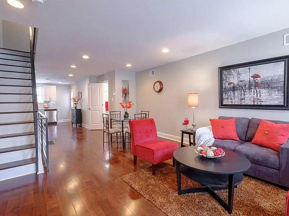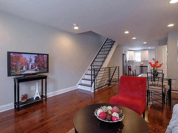 Completely updated! This stunning 2 bedroom, 2.5 bathroom row home is impeccably finished top to bottom. Enter into a bright, open floor plan with warm hardwood flooring throughout. Distinctive iron stair rails, a fresh color scheme and recessed lighting throughout the main living level lend a modern appeal to this home. The completely upgraded kitchen is thoughtfully designed with white cabinets, subway tile backsplash and stainless steel appliances (gas stove, dishwasher, built-in microwave, garbage disposal). An additional large pantry provides plenty of storage space. The main floor also includes a powder room right off the living area. This home is wired for both Verizon and Comcast and features a Nest thermostat. Upstairs, you'll find two generously sized bedrooms, each with its own bathroom. Both bedrooms have closet space, hardwood flooring and plenty of natural sunlight. Master bath features a frameless shower and a floating vanity with his & hers sinks. The completely updated second bathroom features a soaking tub with subway tile tub surround and another floating vanity. This home also features a large, secluded backyard patio with great opportunities for outdoor recreation or relaxation. The beautiful patio has ample space for gardening, a fire pit, a grill and more! In addition to all of this, there is also a large finished basement that adds an extra 250 square feet of versatile living space. Can be used as a home office, rec room or more! Washer and dryer included in the basement. Best of all, this home is conveniently located within walking distance of great shops and restaurants in Point Breeze. Or walk to all that Rittenhouse has to offer in just 15 minutes! Tenant required to pay all utilities. No smoking. Pets welcome - case by case at landlord discretion (private pet policy and fees may apply).