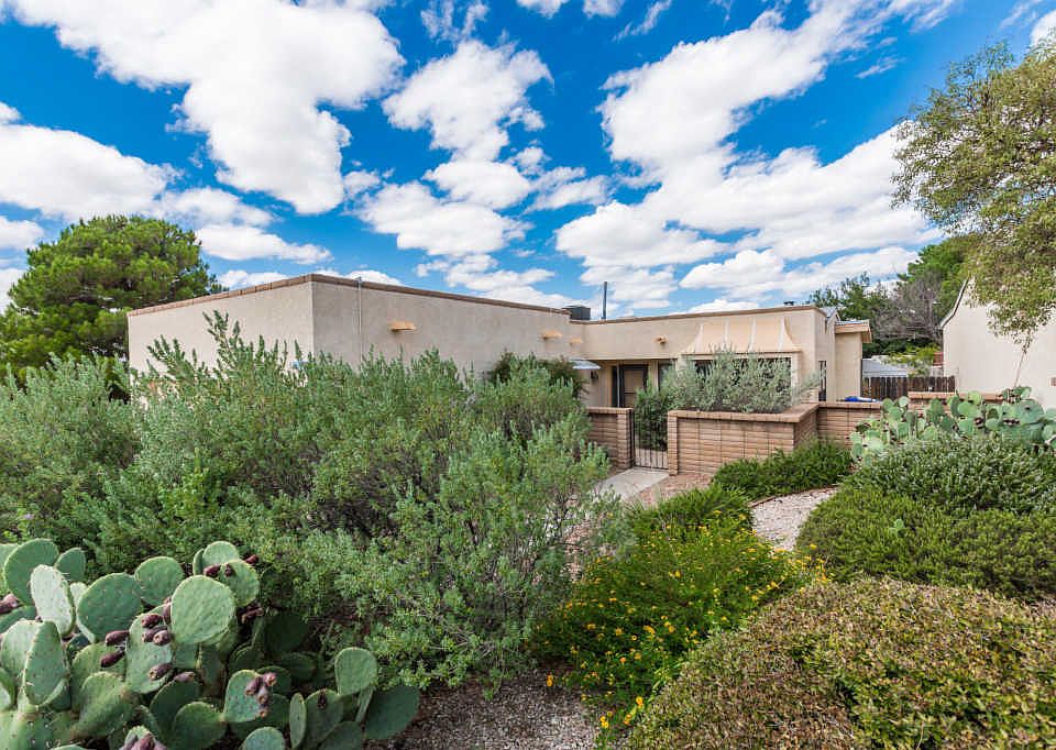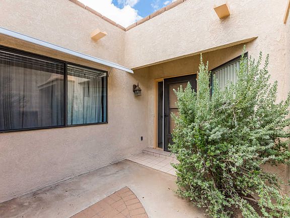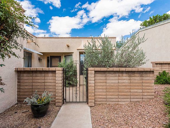 Spacious and bright 2 bedroom, 2 bath Southwestern style home just off of Roadrunner, ready to move in! The front of the home features a gated courtyard with a small patio and desert landscaping. There are vaulted ceilings in the living area of the home and the country style kitchen and dining area are separate. All appliances convey, including washer and dryer (seller does not warranty their performance). Flooring is tile throughout the kitchen and great room, carpet in the bedrooms. Both bedrooms are very spacious, and provide double closets. Home is set up so each bedroom could be a Master Suite. Bathrooms are clean and bright with some updating. Some photos have been virtually staged to show the great potential of this home. Nice neighborhood; conveniently located near schools, parks, golf course, retail stores and more!