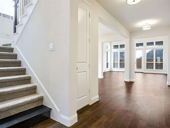 Exquisite 5-bedroom, 2-story residence nestled in Star Trail boasting a 3-car garage! This captivating layout features a cathedral ceiling spanning the expansive living room and kitchen, creating an inviting atmosphere. The living room showcases expansive picture windows, offering panoramic views of the covered veranda. The primary suite is generously proportioned, adorned with abundant natural light, a separate shower, a luxurious soaking tub, and dual vanities. Positioned conveniently, the primary suite and a secondary bedroom grace the first floor. Ascend the stairs to discover three additional bedrooms, two full baths, and a spacious game room. The residence is adorned with stunning finishes, including extensive wood flooring, upgraded countertops, cabinets, and many more luxurious touches throughout. Enjoy the many features in this community including the clubhouse, pool, parks, and tennis courts.