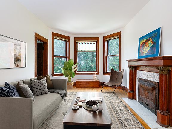Step into the epitome of city living! This generously sized one-bedroom condo exudes the charm of the Gilded Age with its exquisite art glass, untouched trim, solid paneled doors and a captivating decorative fireplace adorned with original vintage tiles and a brass grate. The bedroom is spacious enough for a king sized bed, and features a large closet with built-in shelving. The elegant dining room provides room for formal gatherings and showcases beautiful built-ins. The kitchen, with its sleek new flooring, classic subway tile and convenient pass-through to the living room, is a dream for aspiring chefs. The recently re-tiled bathroom adds a touch of modern luxury with its bright white ceramic tile. And the real gem? A massive deck that overlooks a lush yard adorned with beautiful annuals and perennials, perfect for year-round enjoyment. Free laundry and huge storage closet in the basement. New fence in the back to be installed soon. Nestled in an unbeatable Ukrainian Village location on a tranquil, tree-lined street that offers easy street parking and access to bus lines and the vibrant Chicago Avenue and Division Street. Don't miss out -the last available unit in the complex only lasted 2 days on the market - visit it today!