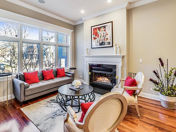 Beautifully updated ALL-BRICK 5 bedroom, 3.1 bath, single family home in the HEART of Roscoe Village in Level 1+ Audubon School District. A timeless floorplan with room for elegant entertaining and effortless everyday living pairs seamlessly with stunning outdoor entertaining/living areas. The sun-filled main level features formal living room with fireplace, flowing to spacious dining room, with a beautiful staircase leading up as the backdrop. The spacious kitchen has been updated with white cabinets and new lighting, and includes SubZero/Miele/Wolf appliances, oversized center island with prep sink and peninsula with breakfast bar seating. Kitchen opens to family room with fireplace, overlooking the beautifully landscaped rear yard and patio with perfectly-planned mud-room adjacent. Main level powder room, too! The second level has 4 large bedrooms, including the private primary suite with professionally organized walk-in closet and spa-like ensuite with dual vanity, tub and separate steam shower. Additional full bath and perfectly placed laundry complete this level. Lower level boasts radiant heated flooring thoughout, huge great room with fireplace and fantastic wet bar, extensive built-ins, plus spacious bedroom with dual walk-in closets, adjacent full bath and optional laundry/utility room. Fully rear fenced yard leads to completely updated rooftop deck with new composite decking, pergola, and custom built-in outdoor kitchen with gas grill and smoker. Additional features and updates: Full control4 A/V system, zoned HVAC, recessed lighting and lighting upgrades in kitchen, dining room and entry, central vacuum system, security system, new garage roof in 2022, home's roof replaced in 2014 with 30-year Duro-last roofing system, gutters replaced in 2021, newer washer & dryer on second level, and new custom built-ins in lower level. A truly wonderful home in FANTASTIC Roscoe Village location on a quiet, tree-lined street with many local-favorite shops, restaurants and entertainment in close proximity, plus easy access to expressway. Must-see!