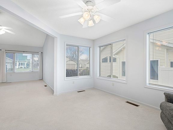**Back on Market no fault of seller or property!** Buyer’s financing fell through, so welcome to the popular Silver Fox age 50+ condo/villa community! You will find a spacious owner's suite with a walk in closet, and double vanity bath and shower. The second bedroom features a nice large closet. The guest bath is roomy with a tub/shower combo. Doorways are extra wide and there are no steps or stairs. In the kitchen, you'll find a kitchen island along with all the appliances and a full size washer and dryer just off the kitchen. The large living room area also has the option of a dining area which is just off the kitchen. A four seasons room surrounded by windows adds additional cozy space for reading and relaxing. This unit features a two car garage. Don't miss this opportunity for extra time in your life with no summer mowing or winter snow removal obligations! (Snow removal is front sidewalk and driveway only.)