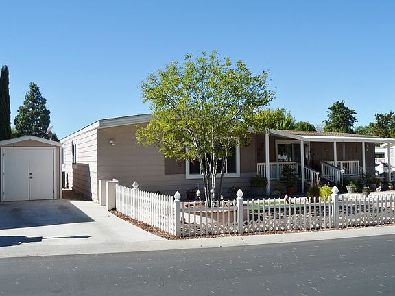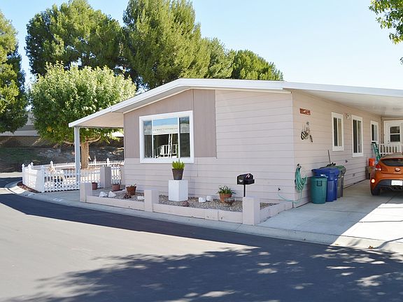 Gorgeous newer mobile home in one of the most desirable senior parks in the Santa Clarita Valley. Gated entry. This home is in move in condition and has many upgrades, newer windows, carpet and kitchen flooring. Great open large kitchen with breakfast eating area. VAULTED CEILINGS WITH SKYLIGHTS BRIGHTEN THIS HOME THROUGHOUT. Large True Formal Dining room. Indoor laundry room. Custom bullnose corners give you the feeling of a new home**3 spacious bedrooms and 2 baths make this a great floor plan. **Master has Separate Tub and Shower** Storage Shed for extra storage. Community boasts a great pool and recreation room. Nothing to do but move right in. Your buyers will love this home!