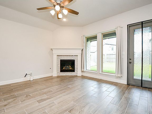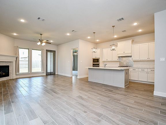 2023 NEW house in a gated community. Step into this beautiful Perry Home featuring a foyer that ushers you into an open-concept kitchen, dining area, and family room, all enhanced by soaring ceilings. The kitchen is a chef's delight, offering ample counter space, a walk-in pantry, and an inviting island with built-in seating. The dining area and family room are bathed in natural light from expansive windows, creating a warm and welcoming atmosphere. The primary suite is a true retreat, boasting a high ceiling and a wall of windows. Double doors open to the luxurious primary bath, which includes dual vanities, a garden tub, a separate glass-enclosed shower, and a spacious walk-in closet with convenient access to the utility room. A guest suite with a private bath adds to the charm of this single-story design. Enjoy outdoor living on the covered backyard patio, and benefit from the practicality of a mud room located off the two-car garage. Welcome home to comfort and elegance!