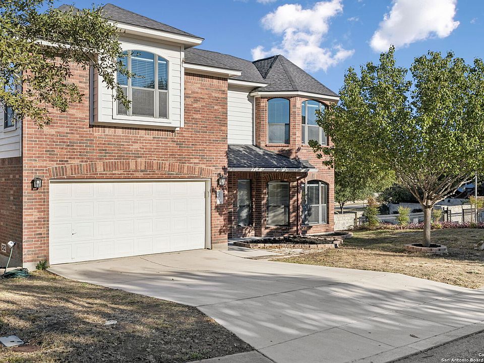 UNPACK, RELAX AND ENJOY!! From the moment you arrive, the majestic curb appeal and pristine updates of this home will take your breath away! Truly move-in ready from top to bottom, every detail has been meticulously cared for-offering a perfect blend of comfort, space, and modern style for a growing family. Inside, glistening laminate floors guide you through generous living spaces, including a formal dining room ready for twelve, a sun-kissed breakfast area overlooking the patio, and a granite island kitchen with gas cooking and all appliances included. The oversized master suite downstairs provides a quiet retreat with a spa-like Jacuzzi tub, while a flex study offers the versatility of a downstairs fifth bedroom. Upstairs, the Texas-sized game room and three spacious secondary bedrooms-with brand new carpet and ceiling fans-are ideal for kids and guests alike. Enjoy peace of mind with extensive updates: new roof (2023), new A/C units (2024), new interior paint (2025), and a new water heater (2022)-all with transferable warranties. Outdoors, relax under the pergola-covered patio or store with ease in the backyard shed. Perfectly located near Hwy 281 and less than 15 minutes to the San Antonio Airport, this stunning family home defines comfort, convenience, and lasting value.